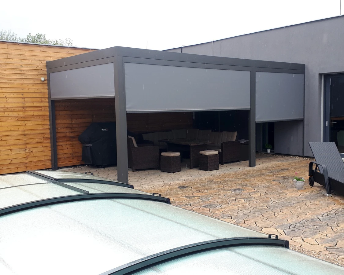 Bioklimatická pergola není jen designový doplněk, ale funkční prvek, který dokáže aktivně reagovat na počasí.